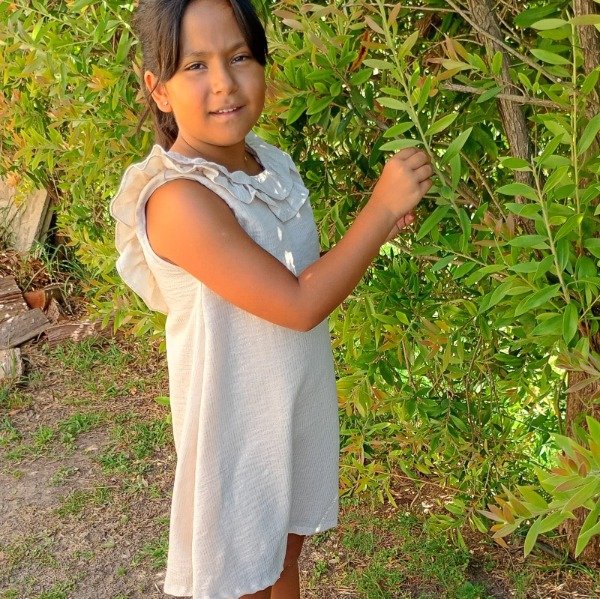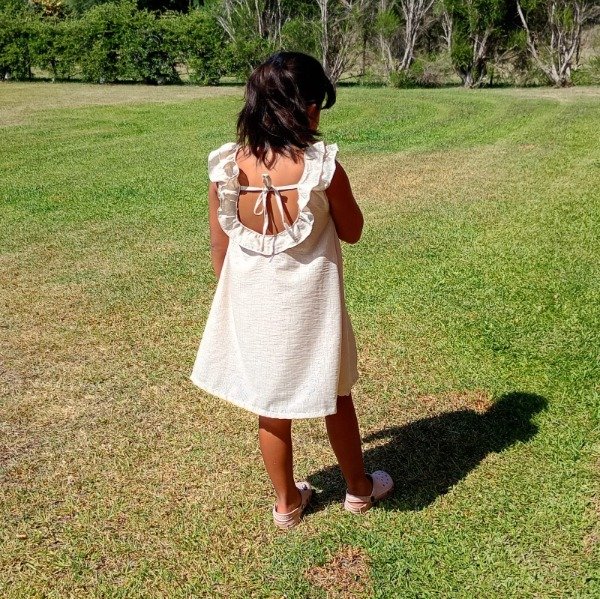 Vestido confeccionado en lino natural con lineas de lurex plateadas muy sutiles. Forrado en rayon super suave.