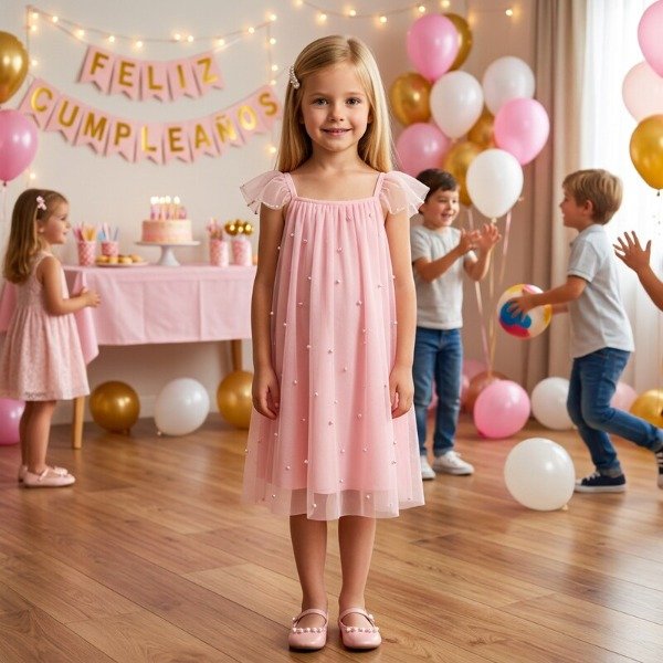 Si querés que tu niña luzca con estilo y se sienta única en los eventos que asista como ser cumpleaños, fiestas etc. acá tienes una de las opciones mas hermosas para lucir. Vestido confeccionado en gasa y el forro en batista de algodón.