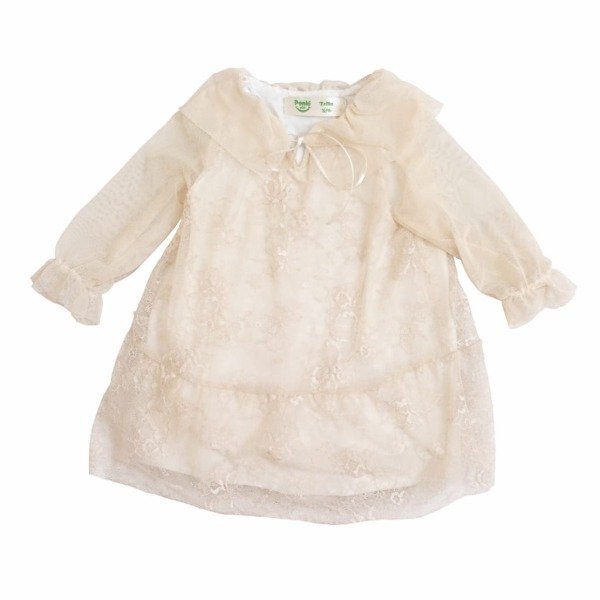 Confeccionado en microtul de plumeti, y otros con encaje, lo que le da una textura sutil y encantadora, y forrado en jersey de algodón, este vestido cuida la piel de tu bebe desde el primer contacto.