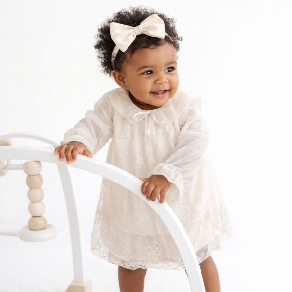 Hay instantes que quedan guardados para siempre... y el bautismo o su primer evento especial es uno de ellos. El vestido Alba nace para acompañar ese momento con la delicadeza y el amor que merece.